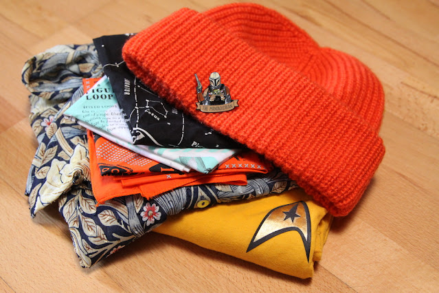 Auch Kleiderkreisel hat mich diesen Monat glücklich gemacht: mit einer neuen Schluppen-Bluse, einem Star Trek T-Shirt und einem Mandalorian-Pin.